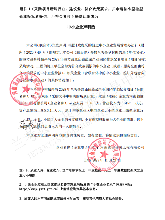 兰考县乡村振兴局2025年兰考县红庙镇蔬菜产业园区排水配套项目-成交公告